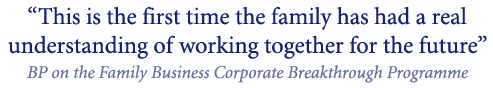 We specialise in Corporate Breakthrough Programmes for Family Businesses. Drawing upon a wealth of business experience we have put together four corporate Programmes designed to unlock resources for growth, development and continuity. Each programme will be typically undertaken by the delegates over a minimum of four consecutive days.